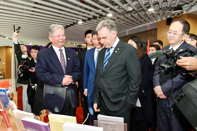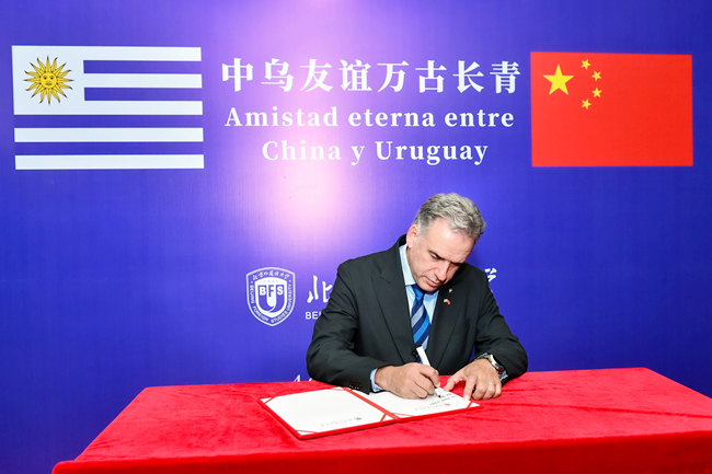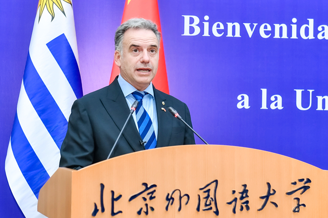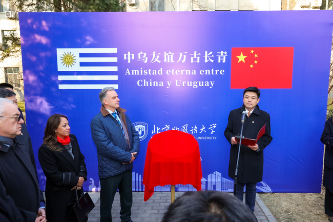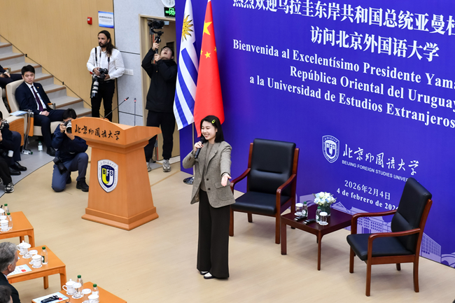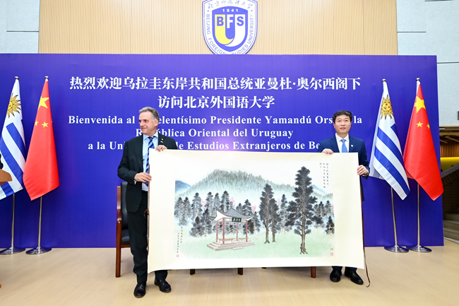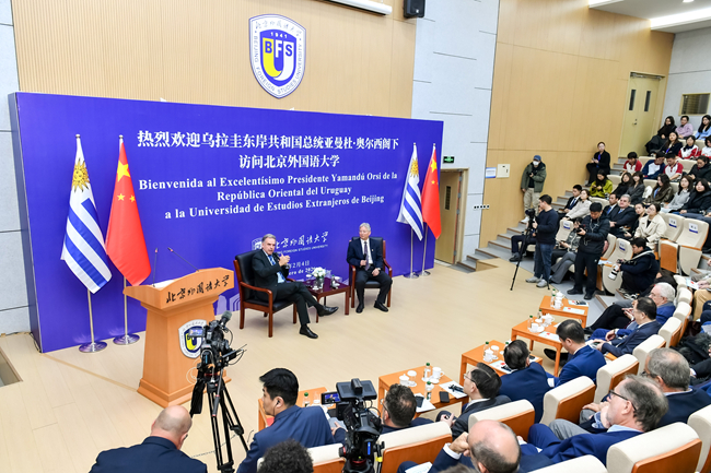 2月4日,乌拉圭总统亚曼杜·奥尔西访问北京外国语大学。北外党委书记李海,党委副书记、校长贾文键,党委常委、副校长赵刚以及中国驻乌拉圭大使黄亚中,外交部拉丁美洲和加勒比司参赞张文伟,教育部国际合作与交流司副司长张晋等出席活动。