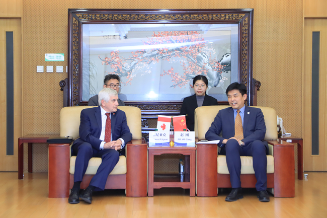 3月16日,加拿大参议员、加中议会协会共同主席吉尼亚克率团访问北京外国语大学。北外党委常委、副校长赵刚会见吉尼亚克一行。