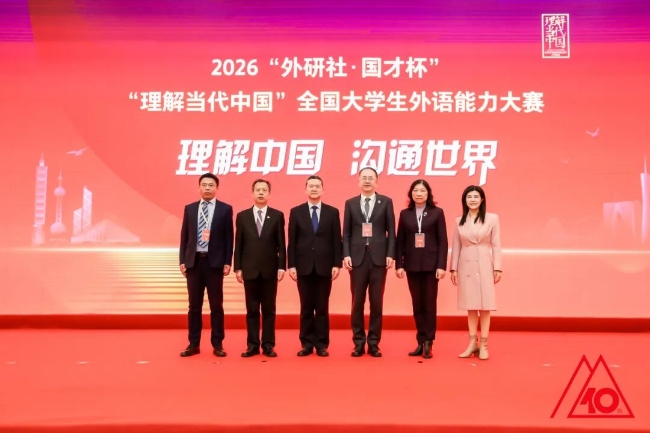 会上启动了2026“外研社·国才杯”“理解当代中国”全国大学生外语能力大赛,发布2026年短视频赛项题目“数说中国”和定题演讲题目“China in the Garden of Civilizations”(文明百花园 中国共芳华)。武世兴、贾文键、孙有中、何莲珍、中宣部国际传播局专项工作处处长李建安和王芳共同启动大赛。