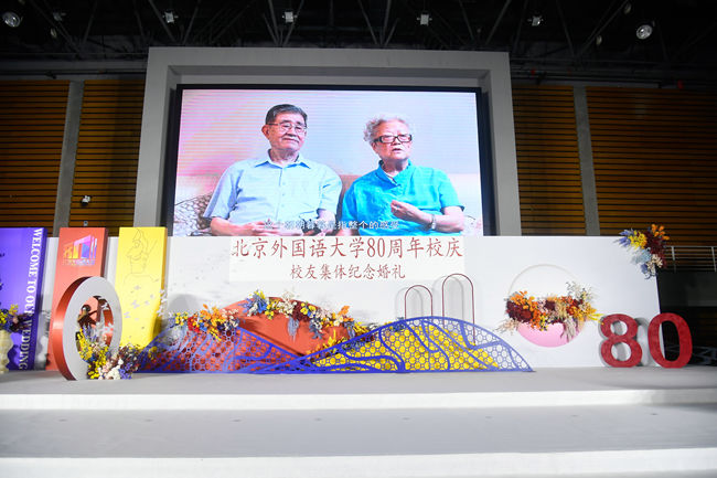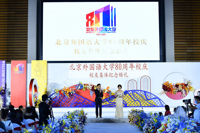 9月19日上午,北外举办80周年校庆校友集体纪念婚礼。著名外语教育专家、原北外英语学院教授陈琳、王家湘夫妇,英语学院校友刘珣、张秐夫妇,英语学院校友、原驻欧盟大使宋明江、著名外事翻译家张幼云夫妇3对耄耋伉俪与其他23对校友伉俪齐聚北外,喜迎母校八十华诞。