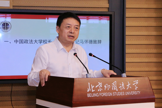 中国政法大学校长、党委副书记马怀德,党委副书记、副校长常保国,北外校长、党委副书记杨丹,党委副书记、副校长贾文键,党委常委、副校长孙有中等出席仪式。开班仪式由贾文键主持。