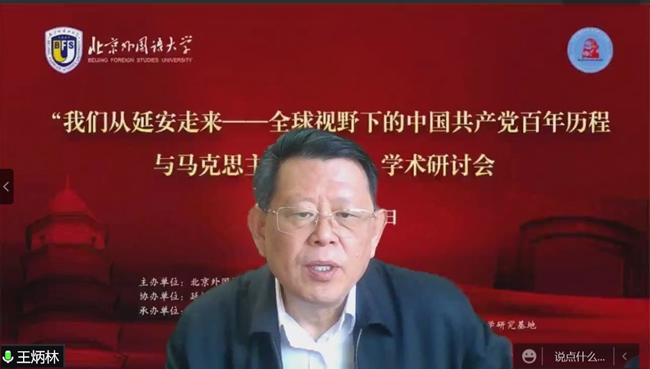 5月15日,由北京外国语大学主办、北外马克思主义学院承办,延河高校人才培养联盟和全国涉外院校思政课负责人协作会协办的“我们从延安走来——全球视野下的中国共产党百年历程与马克思主义中国化”学术研讨会在线上举行。北外党委副书记苏大鹏、北京师范大学中共党史党建研究院院长王炳林,延安大学副校长谭虎娃,全国涉外院校思政课负责人协作会会长、上海外国语大学马克思主义学院教授赵鸣歧等出席会议。来自国内高校、科研院所的100余名专家学者、青年学生共聚云端开展学术交流研讨。会议由北外马克思主义学院院长韩强主持。
