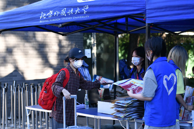 为做好疫情防控下的迎新工作,北外开展多轮次迎新工作桌面推演和实景演练,18个行政职能、教辅和后勤部门联动发力,不断优化迎新工作方案,确保疫情防控精准、报到方案科学、工作衔接有效;确保服务保障到位,在校门入口处设置迎新咨询服务处,为新生提供暖心咨询,发放报到流程卡、校园地图和新生指南等材料,让新生报到和入校后的学习生活有图可依、有书可查。在运动场专门设置生活服务区,为新生提供通讯、银行业务办理以及书籍、生活用品和床上用品自助采购,让新生在校园内实现学习生活物资一站式办齐。