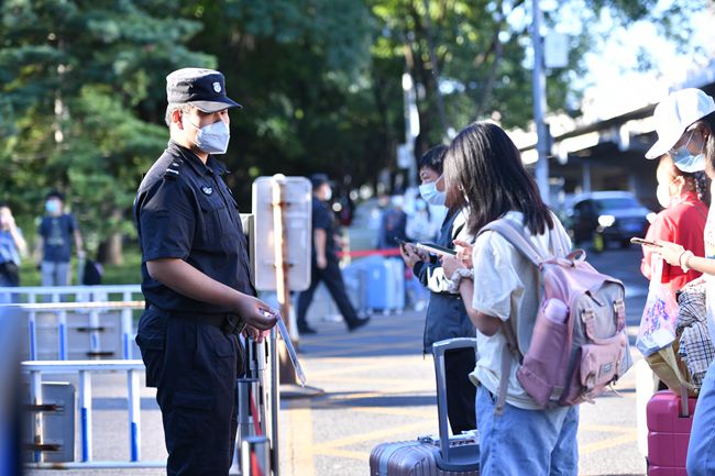 按照教育部、北京市相关要求,今年迎新工作严格落实疫情防控政策。为确保新生顺利入校,北外提前细化工作流程,按照“分期分批错时错峰返校”原则实行分学院分批报到。新生可提前通过企业微信提交健康码、核酸检测报告获取入校码,报到测温后扫码入校,减少排队等待时间。