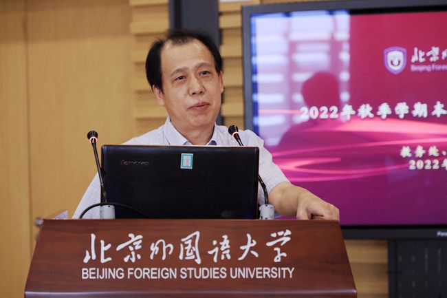 教务处处长李莉文从开展《理解当代中国》多语种系列课程建设专项立项、第二批国家级一流本科专业中期汇报、全校本科教学工作会议、2022年国家级教学成果奖申报、建设和使用在线课程五个方面,介绍了秋季学期教务处各项工作要点及各学院需要落实的工作,并通报了调停课、领导听课、教学大纲提交等数据情况。教材处处长张文超从推动“三进”及理解当代中国系列教材使用、启动非通用语口语入门系列教材二期项目、推动非通用语“十四五”规划教材项目、策划国别区域系列教材项目、举办教材编写工作坊系列活动、实现马工程重点教材相应课程全覆盖等十个方面介绍了本学期教材工作要点。本科招办主任吴玫报告了2022级本科生招录基本情况,介绍了秋季学期招办的工作安排,主要包括招生计划征集、招生宣传形象建设、视频拍摄、招生宣讲团培养等。