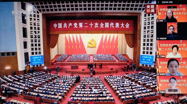 中国外语与教育研究中心师生集体收看二十大开幕会并在线上实时交流
