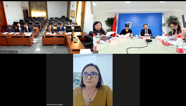 10月27日,地拉那大学孔子学院第九届理事会议以线上形式举行。地拉那大学副校长贝拉德·多思迪(Bernard Dosti)、米尔琳达·博西加库(Mirlinda Boshnjaku)理事、普兰维娜·拉佐(Pranvera Lazo)理事,北京外国语大学党委副书记、副校长贾文键,欧语学院院长柯静、孔子学院工作处处长金利民,孔子学院中方院长章晓英、阿方院长艾尔昂·马拉依(Erion Malaj)等参加会议。
