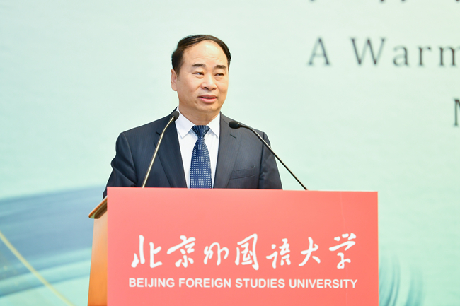 11月8日,爱尔兰副总理兼外交部长米哈尔·马丁访问北京外国语大学并发表演讲,与中外师生进行对话交流。北外党委书记王定华出席活动,活动由党委副书记、副校长贾文键主持。