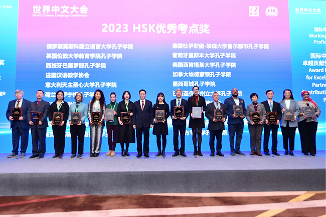 北外合作建设孔子学院和孔子学院合作机构个人在世界中文大会上荣获多个奖项。其中,俄罗斯莫斯科国立语言大学孔子学院、西班牙巴塞罗那孔子学院荣获“2023年HSK优秀考点”称号;阿联酋扎耶德大学孔子学院、匈牙利罗兰大学孔子学院荣获“2023年HSK优秀推广奖”表彰;匈牙利罗兰大学副校长郝清新、意大利罗马大学孔子学院马西尼荣获个人卓越贡献奖。