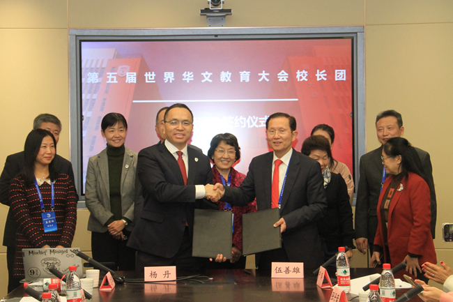 12月18日,“第五届世界华文教育大会”校长团北京外国语大学座谈会举行。北外校长、党委副书记杨丹,党委副书记、副校长贾文键,英国中文教育促进会会长伍善雄,意大利中文学校联会会长陈小微及来自欧、亚、非、南美4大洲16个国家的35名华校机构负责人出席会议。会议由北外华文教育基地常务副主任李伟群主持。