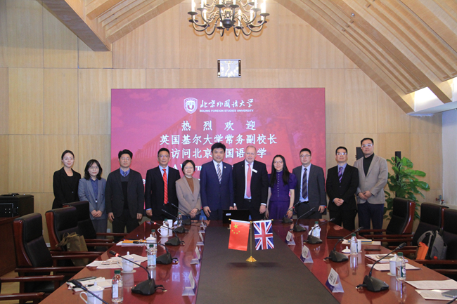 基尔大学成都办事处代表薇薇安・谢,北外-基尔合作办学项目英方主管罗伟国,北外国际关系学院院长谢韬,国际交流与合作处副处长马仲武,网络教育学院副院长蔡静、国际合作部主任屠希亮,北外-基尔合作办学项目中方主管闫健等参加会见。